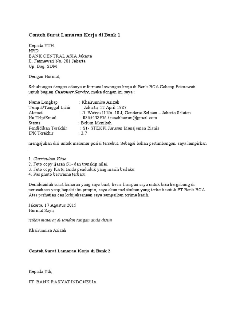 Contoh surat lamaran kerja di bank bca magang bakti. Contoh surat lamaran kerja di bank bca lulusan sma, contoh surat lamaran kerja bank tanpa posisi, contoh surat lamaran magang bakti bca, contoh surat . Surat lamaran magang bakti bca contoh panduan surat terbaru Program terbaik bca untuk para fresh graduate, magang bakti bca memberikan kesempatan dalam mendapatkan pengalaman kerja terbaik di dunia kerja profesional. 12 contoh surat lamaran kerja guru yang baik dan benar.